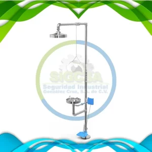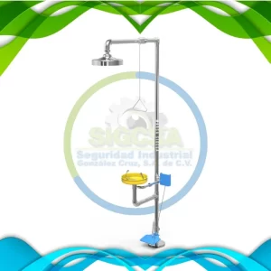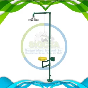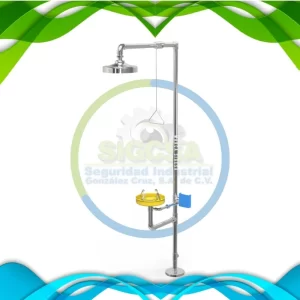 Es activado por medio de palanca debidamente rotulada, con dos rociadores que cuentan con una malla protectora cubre polvo que brinda un flujo suave y decreciente no dañino para los ojos, sus tapas abatibles lo mantienen libre de polvo en los dos rociadores, dejándolo así habilitado para su uso de manera oportuna.