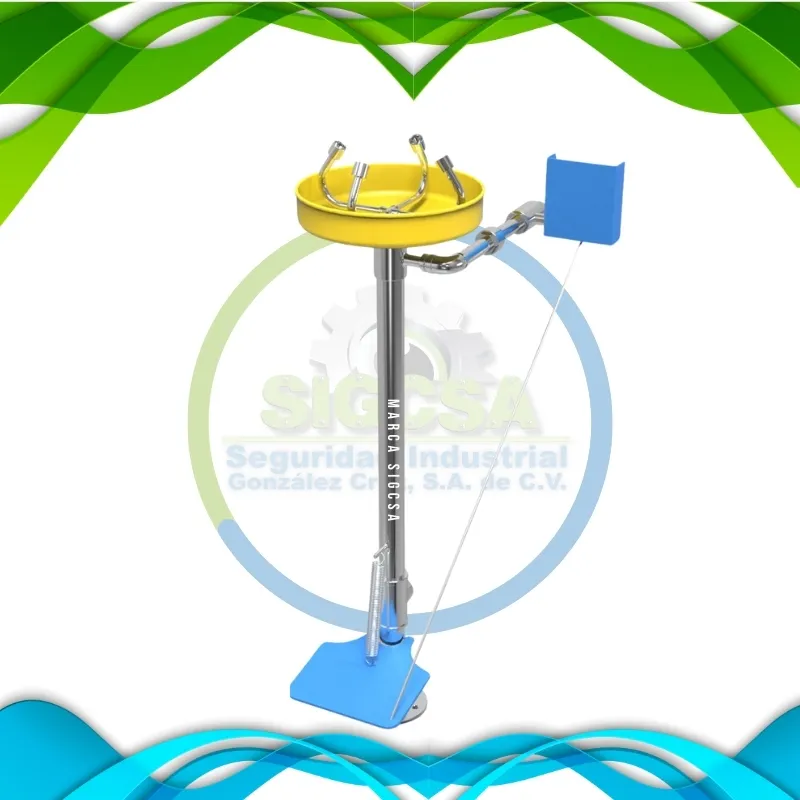 Modelo sin regadera de uso industrial, para el correcto enjuague de los ojos en caso de accidente.